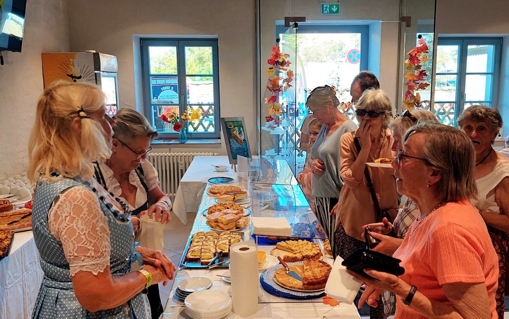 Der Seniorenclub Pesterwitz hatte auch in diesem Jahr sein Club Café in der Gutshofbühne geöffnet. Dank der zahlreichen fleißigen Bäcker, reichte das Kuchenbuffet von Pflaumenkuchen, Bienenstich, über Käsekuchen mit Baiser, Pfirsichtorte bis zu Apfeltorte mit essbaren Blüten, sodass die Kaffeegäste die Qual der Wahl hatten. Die Gäste waren voll des Lobes über die hausgemachten Kuchenkreationen und am frühen Sonntagnachmittag war kein Krümelchen mehr vorhanden. Alle Teller leer.