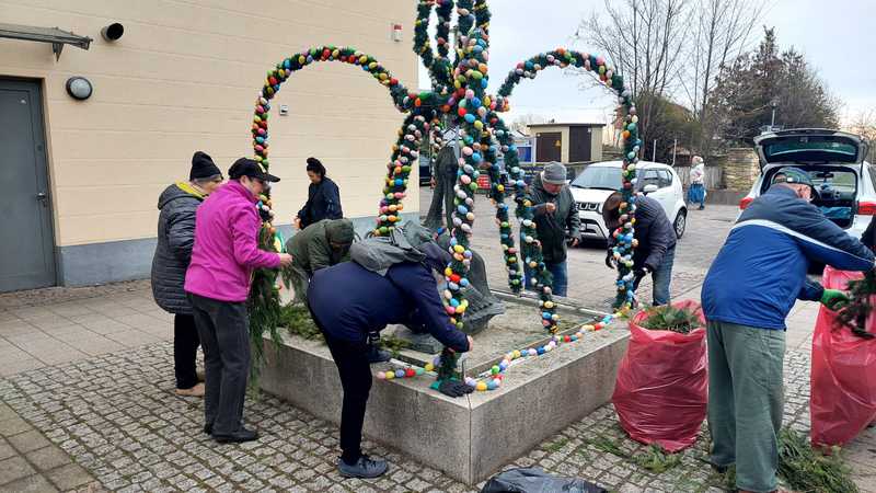 Der erste Osterbrunnen in Pesterwitz steht. Und was für ein schöner.