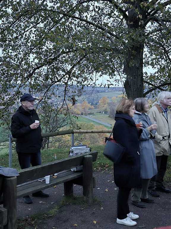 Bei der herzlichen Verabschiedung an der Kirche war es schon ein bisschen dunkel. es war ein wirklich schöner Nachmittag. Die Gäste wollen wiederkommen.