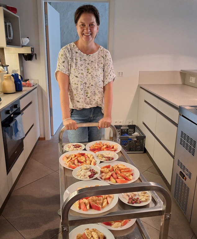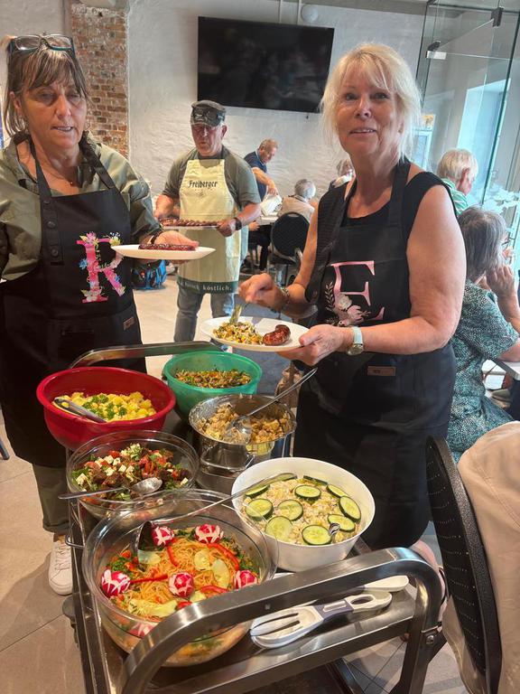Heute wurde der Kuchen gegen eine leckere Bratwurst, selbstgebackenes Brot und Brötchen, verschiedene Buttermischungen und eine bunte Salatauswahl eingetauscht.