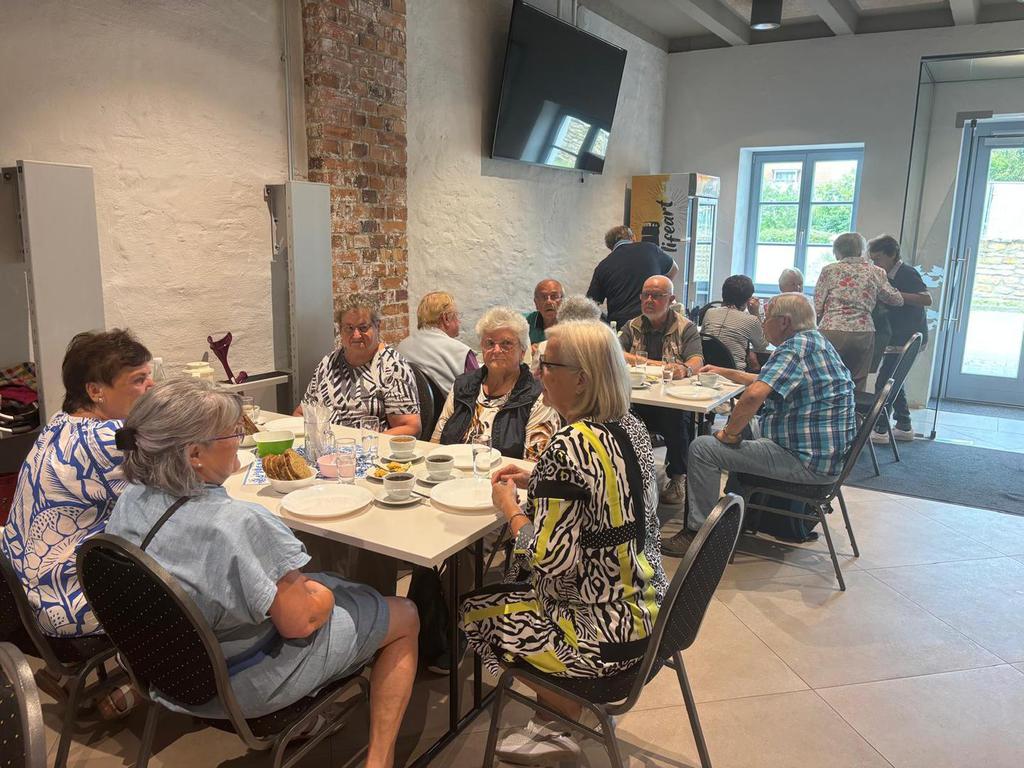 Empfangen wurden heute die Senioren von einer wunderschön gedeckten großen Tafel inmitten des Raumes. Dank an das Vorbereitungteam.