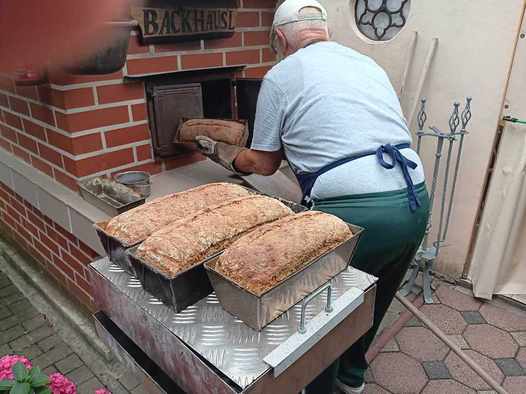 Familie Ihm hat extra für den Grillnachmittag ihren Brotbackofen angeheizt und duftendes Gewürzbrot, Brötchen und die dazu passenden Brotaufstriche mitgebracht.