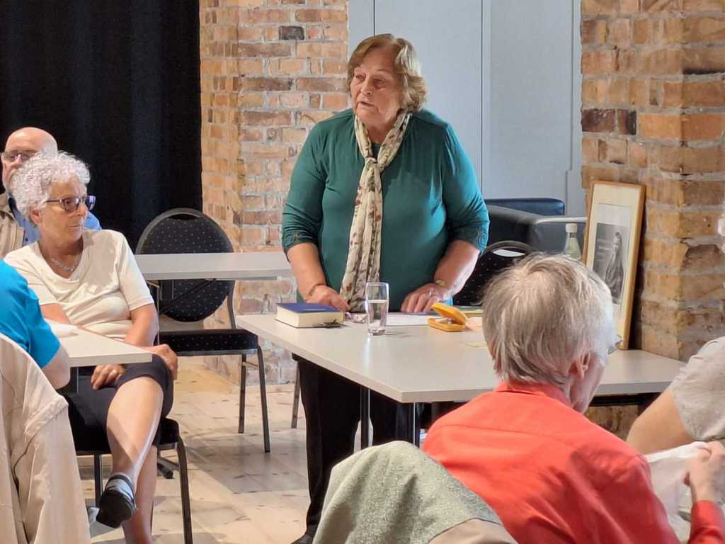 Viele sind zum Erich-Kästner-Nachmittag mit Lisa Schüler gekommen. Sie zog alle mit ihrem interessanten, sachkundigen und geschliffenen Vortrag in ihren Bann. Bis zum Schluss war es mucksmäuschenstill in der Gutshofbühne. Lisa Schüler beschränkte sich im Wesentliche auf Kästners Dresdner Zeit, seine Kindheit und Jugend , seine enge Beziehung zu seiner Mutter und seine lebenslange Liebe zu seiner Heimatstadt Dresden. Abwechselnd sprach sie über sein Leben und las aus seinem Werk. Erich Kästner sollte so viel wie möglich selbst zu Wort kommen, zum Beispiel mit Passagen aus seinem Buch "Als ich ein kleiner Junge war" und humorvollen, aber auch nachdenklichen Gedichten. Wir hörten viel Bekanntes aber auch Neues. Lisa Schüler brachte uns Erich Kästner noch ein Stück näher. Sie war früher Lehrerin für Deutsch und Russisch. Ganz sicher war sie eine sehr gute Lehrerin.