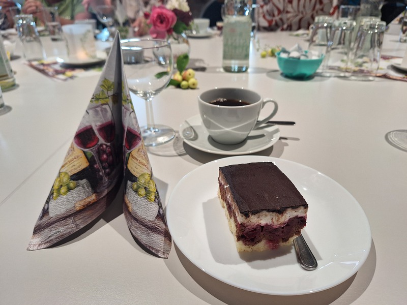 Mit einem Stück Donauwelle und einer Tasse Kaffee begann der Nachmittag schon mal vielversprechend. Danach entführten uns Ursula und Frank Dietrich in die Wachau und stellten uns ihre liebgewordenen Weine vor.