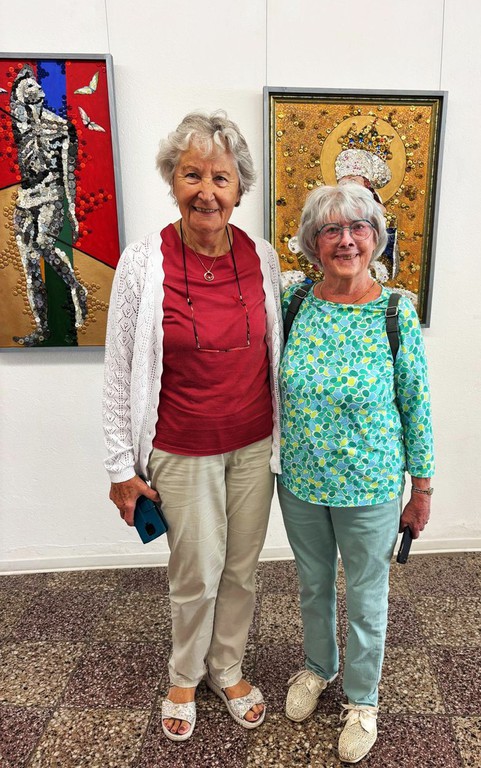 Nach einem köstlichen Mittagessen im "Schützenhaus", spazierten wir zur Kunsthalle, wo die Ausstellung von Michael Voigt anlässlich dessen 80. Geburtstages mit Musik vom Violinenduo "10 Kronen" und einer Laudatio von Prof. Peter Badel und einer Hommage vom Künstler an seinen verstorbenen Freund und Maler Norbert Hofer eröffnet wurde.