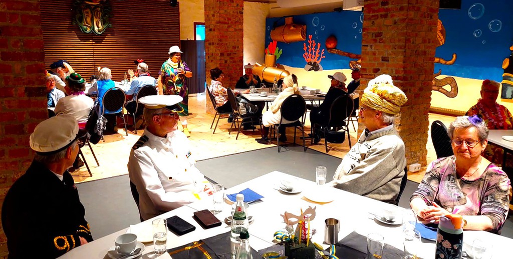 Alle kamen mit lustigen Kostümen, am häufigsten war die Berufsgruppe der Kapitäne vertreten, die gleich im Viererteam auf unserem "Narrenschiff" anheuerten.