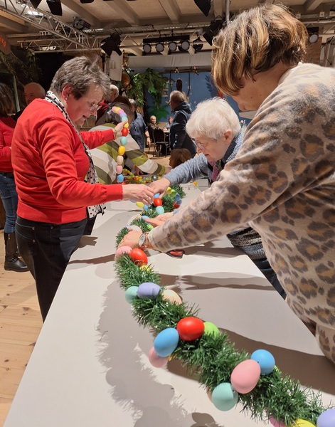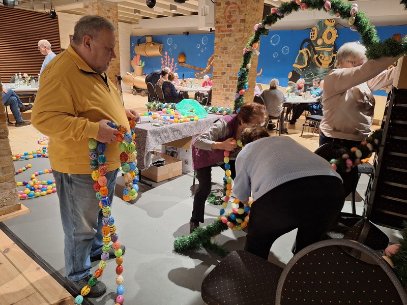 Nach der Eröffnung des "Kaffeeklasches" durch Regina Goldhahn, ließen wir uns wie immer den leckeren Kuchen schmecken, um uns dann gestärkt der Arbeit am Osterbrunnen zu widmen. Es setzte ein geschäftigtes Treiben ein und alle anwesenden Mitglieder des Seniorenclubs sehen der Eröffnung des Osterbrunnens am 20.03.2026 erwartungsvoll entgegen.