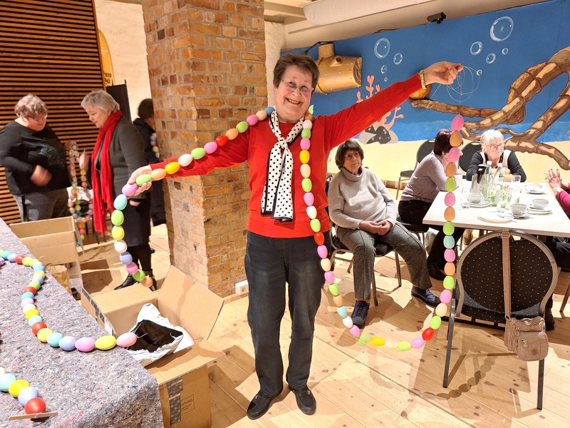Die Zeit verging beim Basteln am Ostereierbrunnen und den Gesellschaftsspielen wie im Fluge und alle Senioren verliesen nach zwei Stunden zufrieden die Gutshofbühne.
