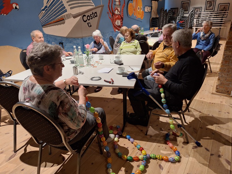 Nach einer gemütlichen Kaffeerunde konnten sich die Teilnehmer Inspirationen für Oster- und Basteldekorationen holen. Zudem stellte Frau Nentwig den Aquarell-Malkurs des Seniorenclubs vor. Frau Schüler las aus "Das Alphabet" von Bertolt Brecht vor.