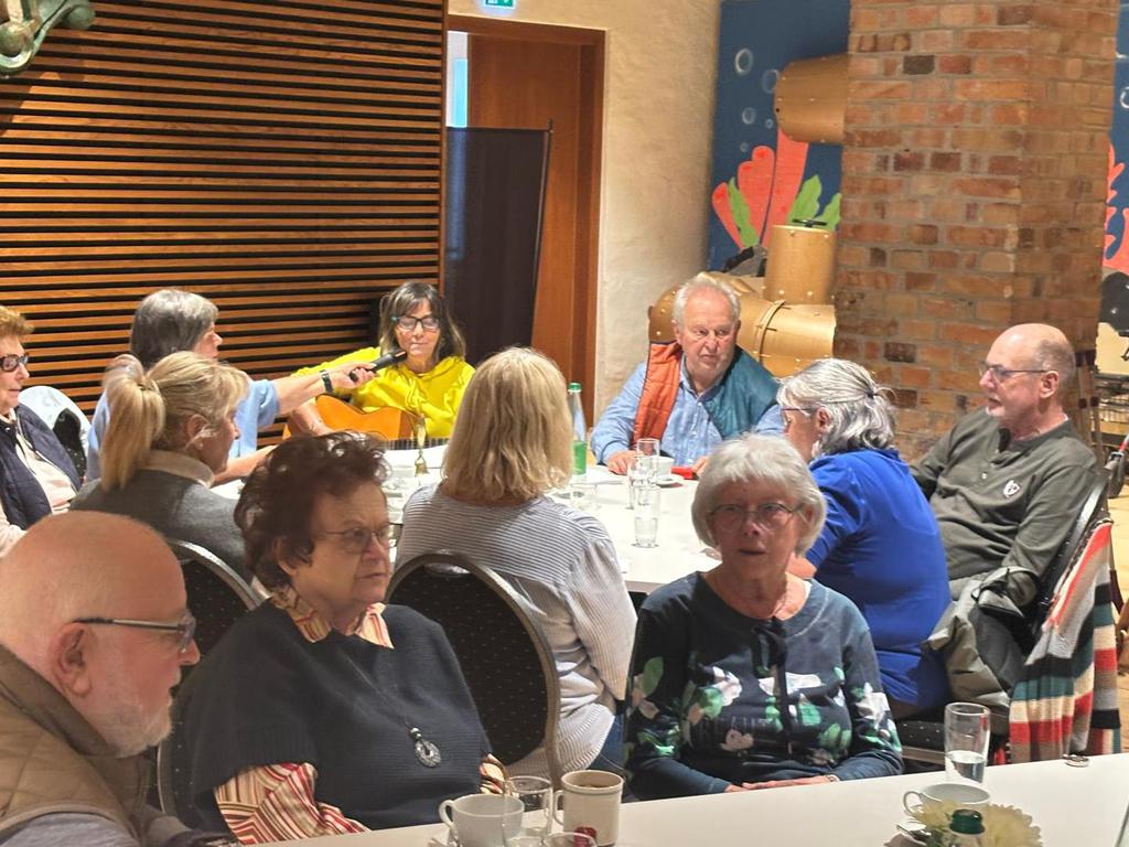 Regina Goldhahn hatte ihre Gitarre mitgebracht und so haben wir gemeinsam die Frühlingslieder gesungen, die wir zur Eröffnung des Osterbrunnens am 20.03.2026 ebenfalls singen wollen.