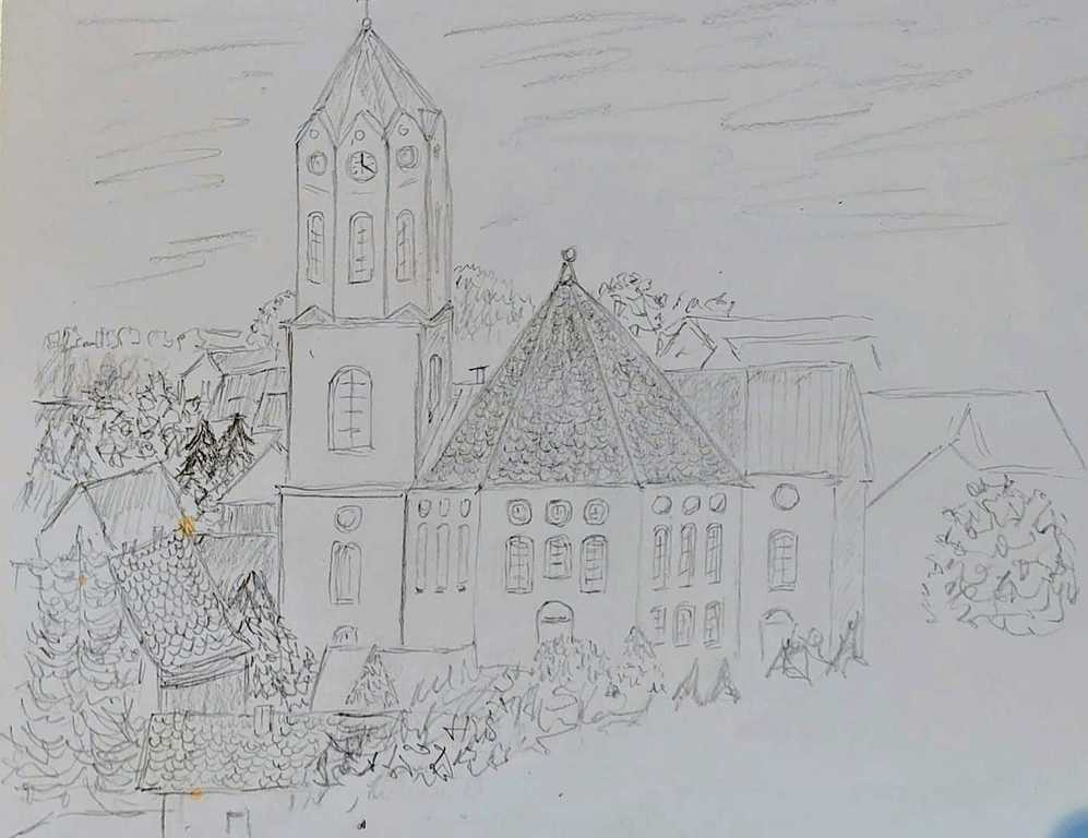 Am Vormittag hatte der Malkurs das frühlingshafte Wetter genutzt und sich mit Skizzenblock und Stiften draußen getroffen. Der erste Weg führte die Gruppe zum Leisepark und später zur Kirche, wo die Teilnehmer jeweils die Eingangatore im Bild festhielten.